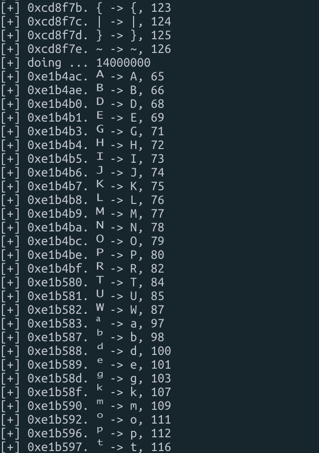 대충 파이썬으로 슥슥 코드짜서 nodeprep.prepare 함수에 대한 unicode fault를 전수조사 해보면 0xe1b4ac~0xe1b582가량까지 유니코드를 넣으면 영대문자가 나오는 것을 확인할 수 있다.