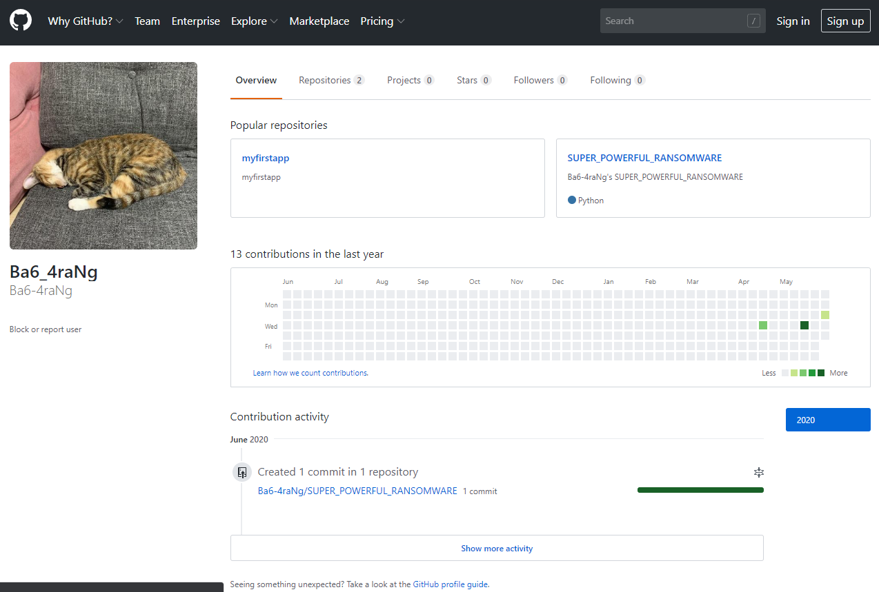 짜잔- 여기엔 아까 보았던 랜섬웨어 이름으로 된 repository가 존재합니다.