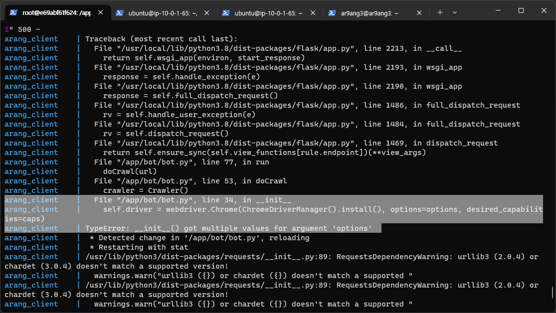 3. 드래그한 부분이 에러인데, TypeError: __init__() got multiple values for argument 'options'라고 뜬다.