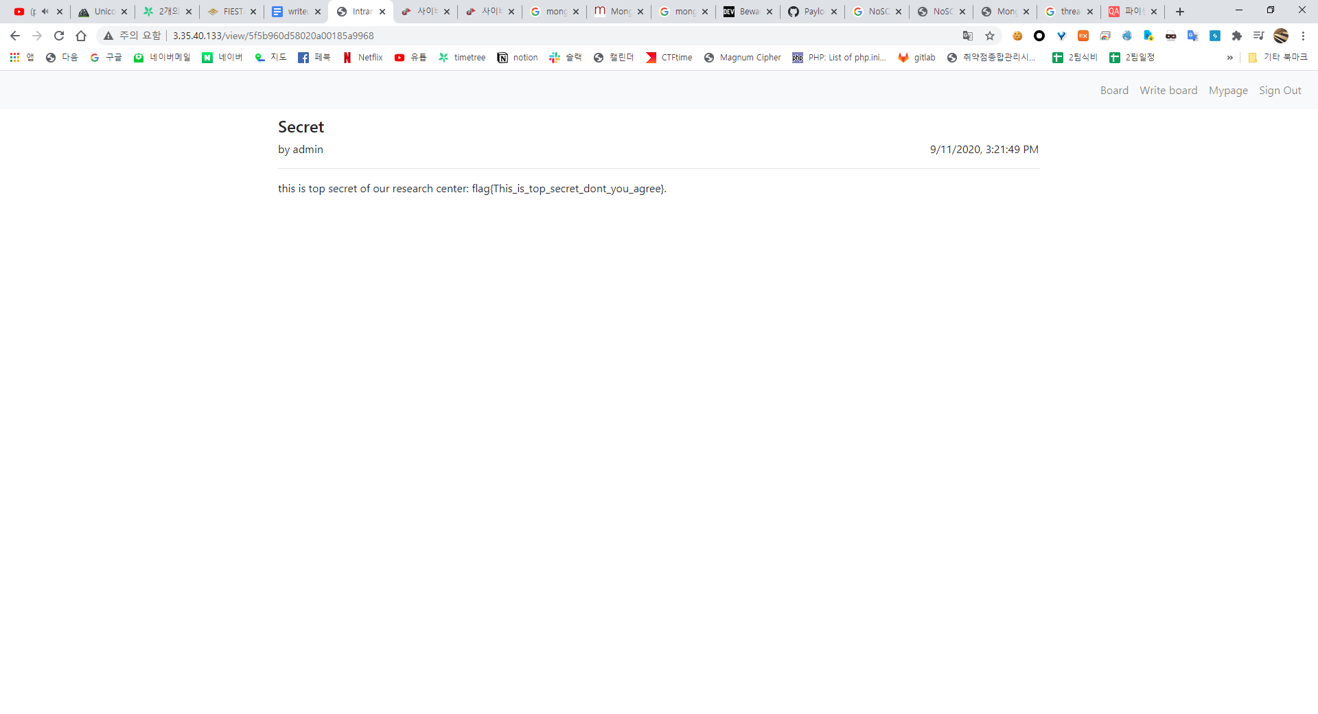 이제 여기까지가 Web hacking의 영역이고 이후부턴 misc 영역이다.