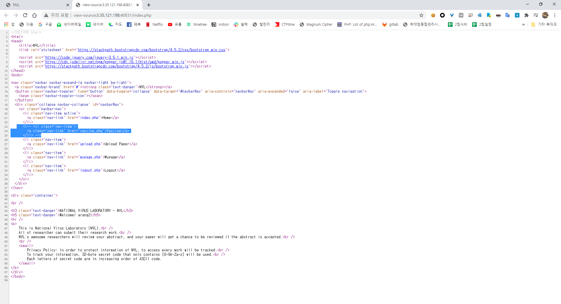 외부망 소스코드 유출, 첫번째 플래그