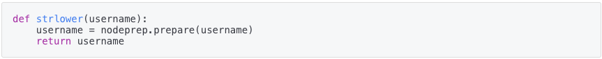해당 소스코드에서 strlower가 커스텀으로 구현되어있는데 뭐 이상한 nodeprep.prepare를 사용한다고 한다.